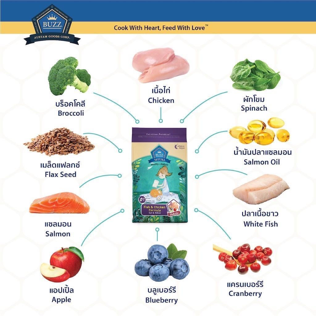 บัซซ์ เนทูร่า โฮลิสติกเกรน ฟรี โปรตีน เอ็กซ์ สูตร ปลาเนื้อขาว ปลาแฮร์ริ่ง และ ไก่🐣🐟