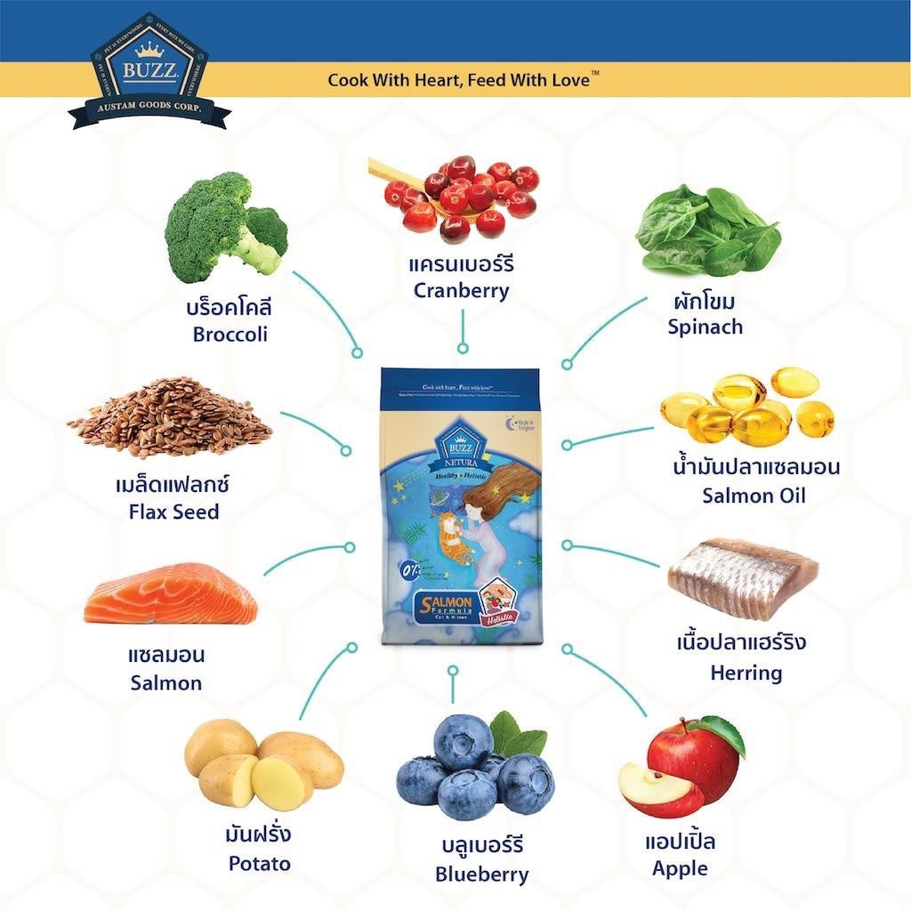 บัซซ์ เนทูร่า โฮลิสติกเกรน ฟรี โปรตีน เอ็กซ์ สูตร ปลาเนื้อขาว ปลาแฮร์ริ่ง และ ไก่🐣🐟